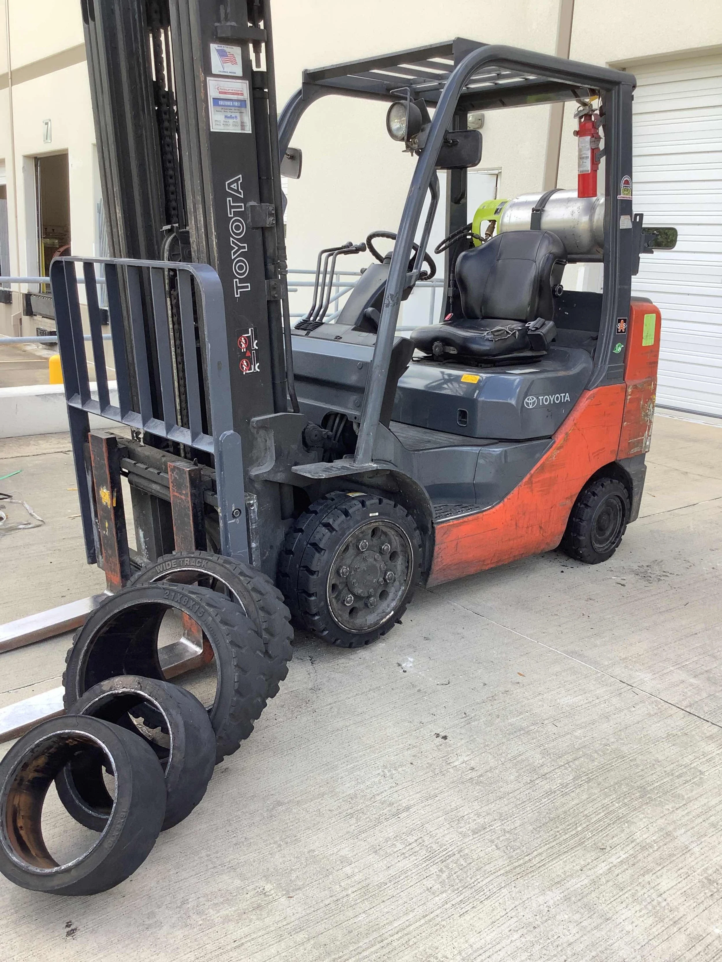 Need new tires for your forklift? We come to your location with all the equipment needed to press solid or cushion tires right on-site. Our mobile service helps you avoid unnecessary delays — keeping your forklifts safe, efficient, and ready to work. We handle all makes and models.