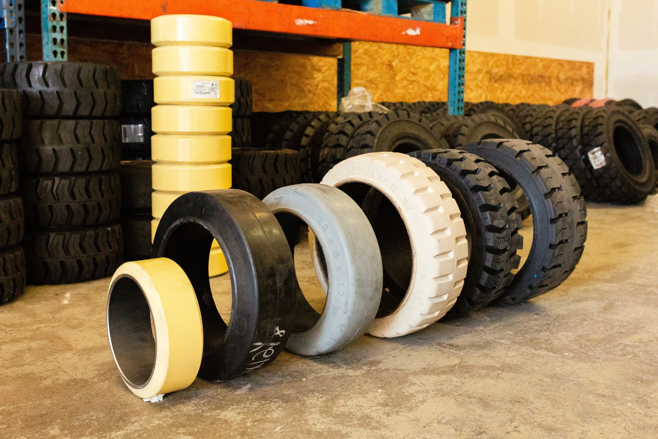 We bring fast, professional forklift tire pressing directly to your job site—no need to transport your equipment or lose valuable time!